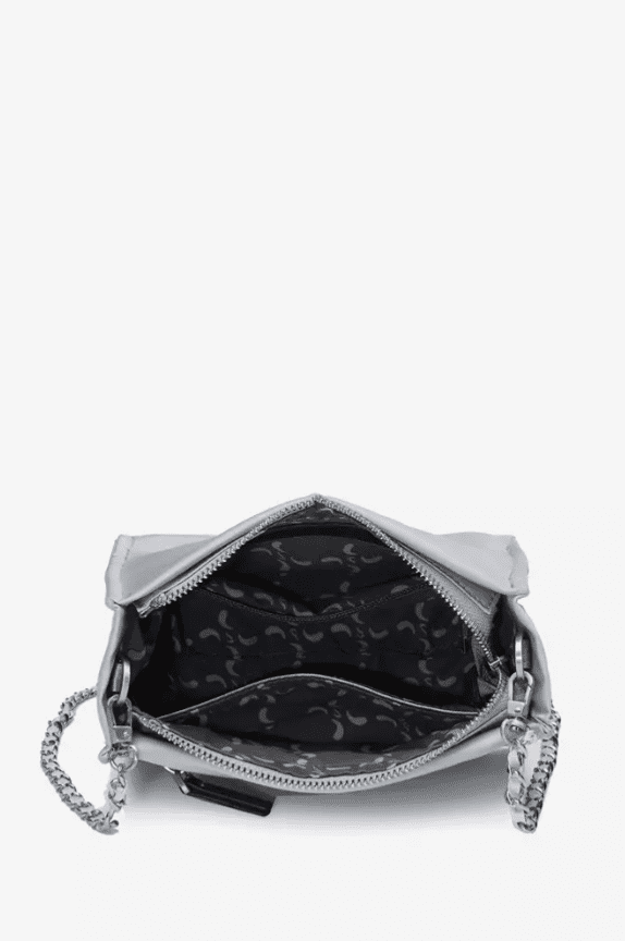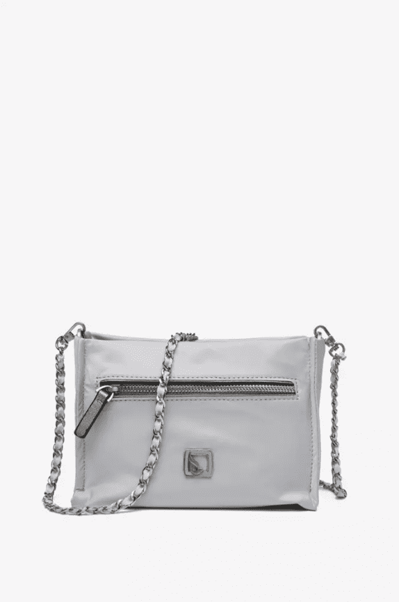 Bandolera de mujer elaborada con un original tejido de efecto satinado. Un diseño ideal para aportar un toque chic a todos tus looks, especialmente los de fiesta. Su interior, totalmente forrado, dispone diversos compartimentos, uno de ellos con cremallera. Su asa bandolera de cadena le aporta un estilo muy actual. En su parte frontal, destaca un pequeño aplique metálico con el logo de la firma.